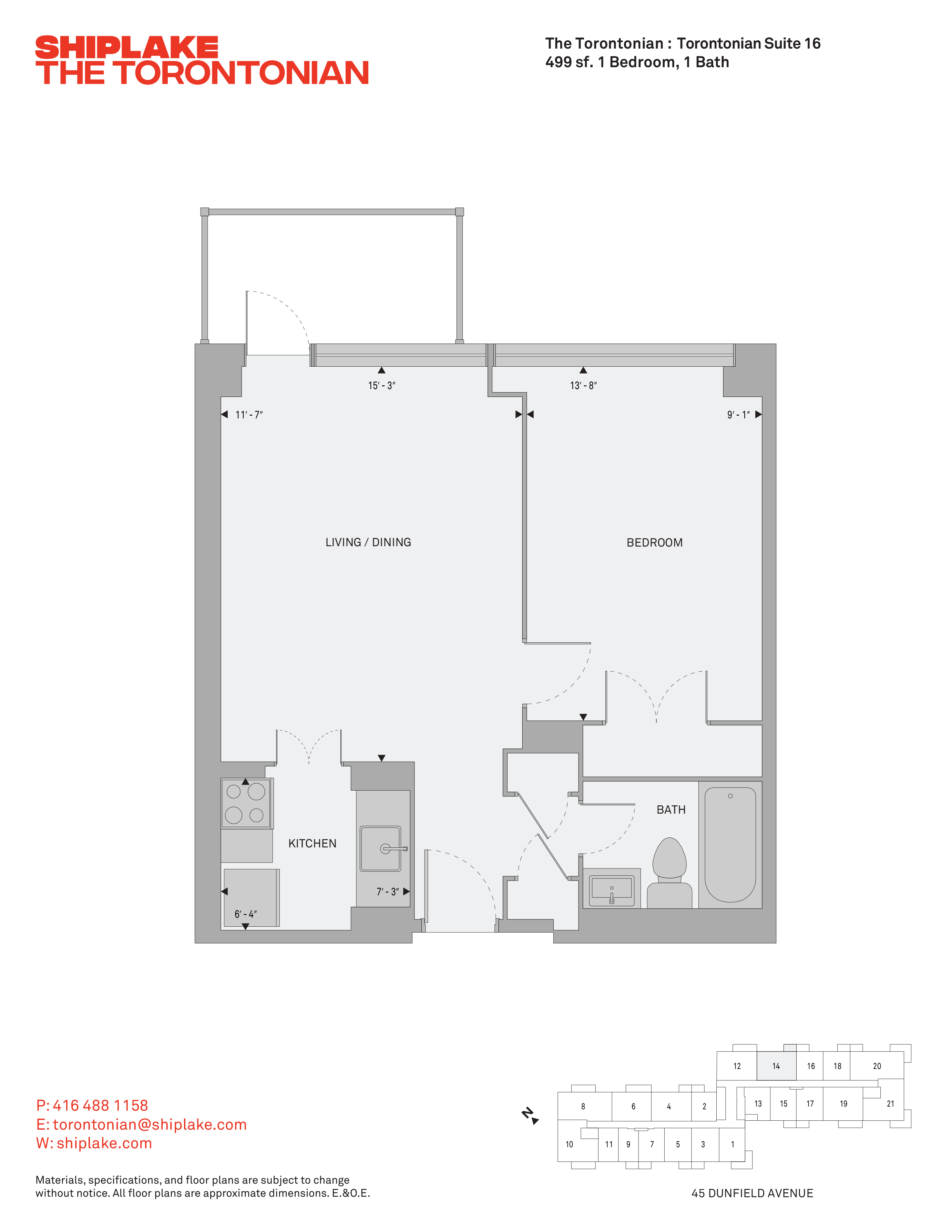 Offering a premium rental experience with large suites, sun-filled expansive balconies and access to state-of-the-art amenities, it stands out as a central landmark in a bustling node. A short walk in any direction connects our residents to shops, restaurants, trails and transit. The Torontonian truly offers a block of the city to call your own.